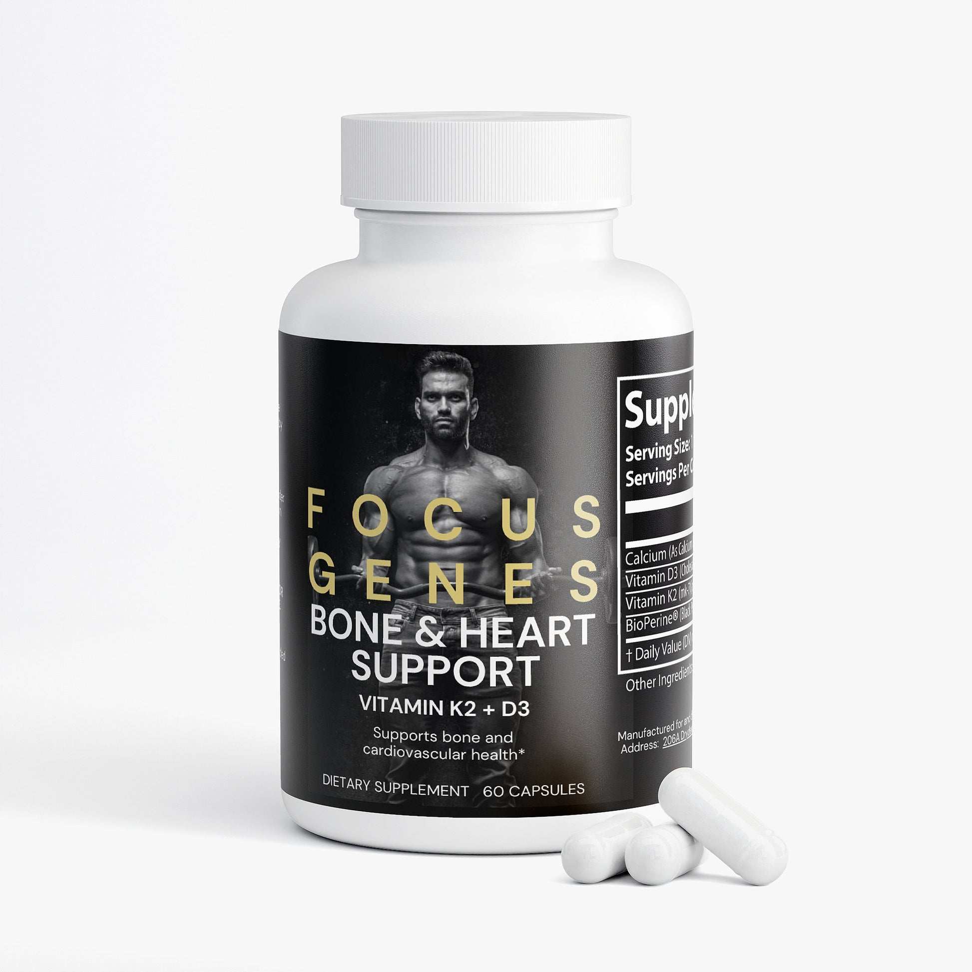 Ingredients: Calcium (as Calcium Carbonate), Vitamin D3 (Cholecalciferol), Vitamin K2 (mk-7)(as Menaquinone), BioPerine® (Black Pepper Fruit Extract), Microcrystalline Cellulose, Hypromellose (vegetable capsule).